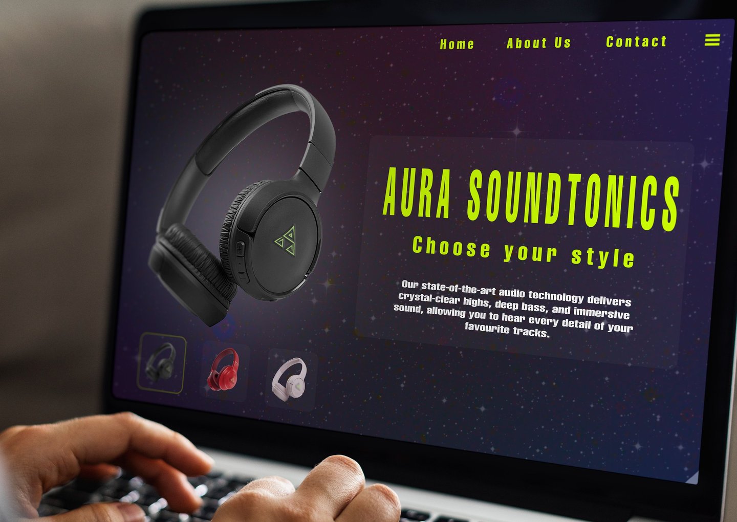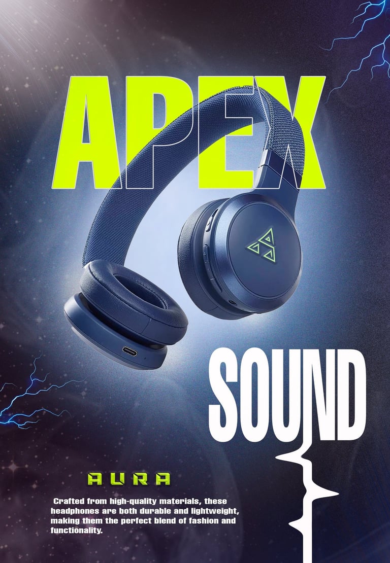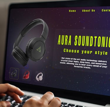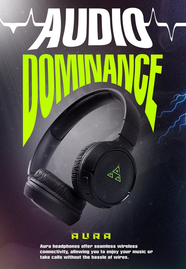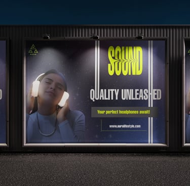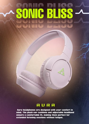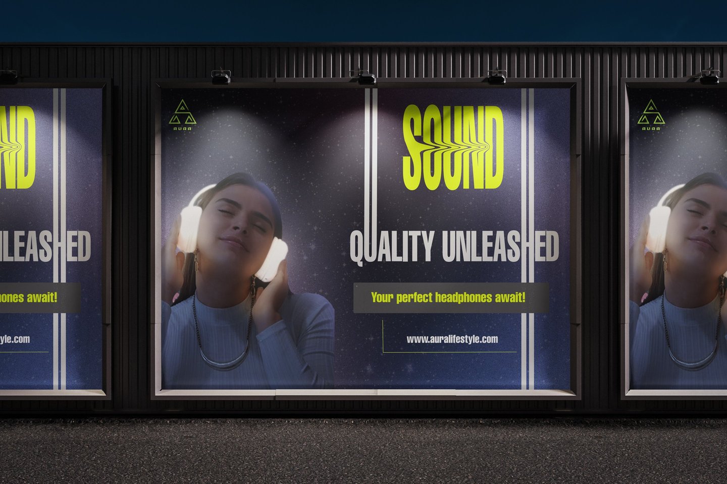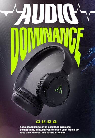 Aura is an audio technology company specializing in high-end headphones. The goal for clients were to create a marketing campaign collateral family aimed at tech-savvy individuals, audiophiles, and trendsetters. The target audience values both aesthetics and functionality in their audio accessories, seeking products that not only deliver exceptional sound quality but also reflect their personal style.